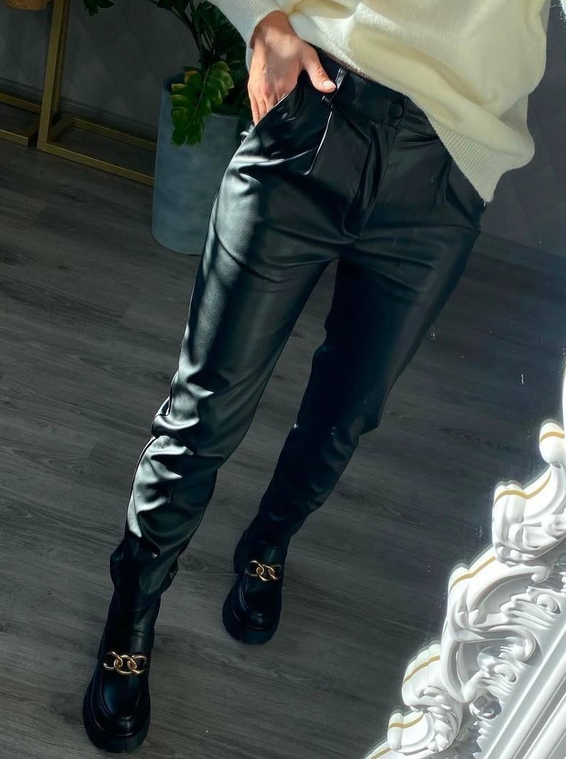 - Класичні брюки з матової еко-шкіри