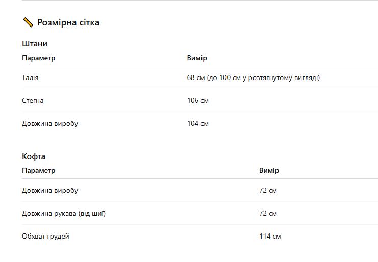Таблиця розмірівРозмірна сітка для жіночого одягу
