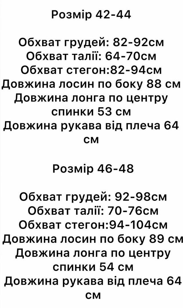 - Розміри: 42-44; 46-48