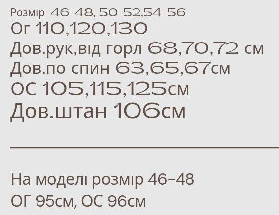 - Розміри: 46-48, 50-52, 54-56
