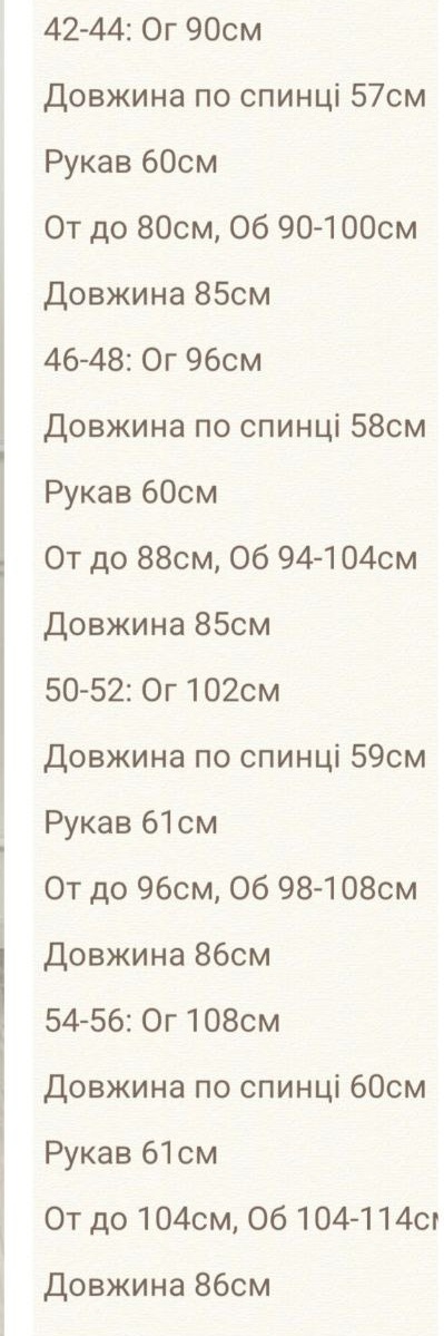- Розміри: S-M(42-44), L-XL(46-48), 2LX-3XL (50-52), 4XL-5XL(54-56)
