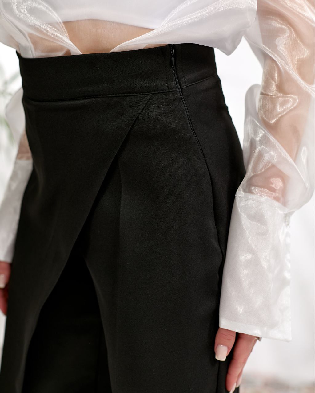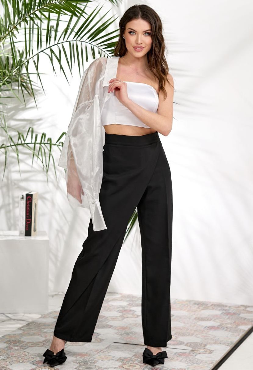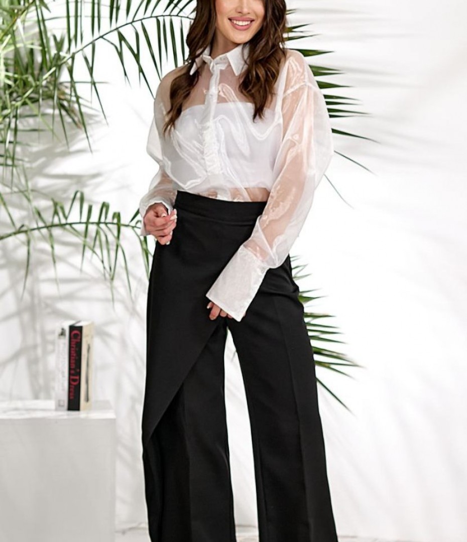 - Тканина: блуза-органза, топ-атлас, штани-костюмка