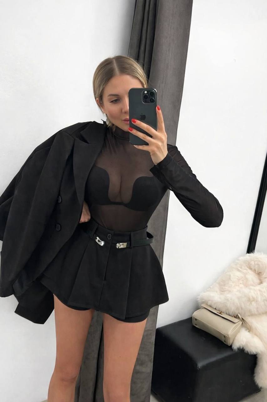 - Костюм трійка піджак, спідниця-шорти та боді