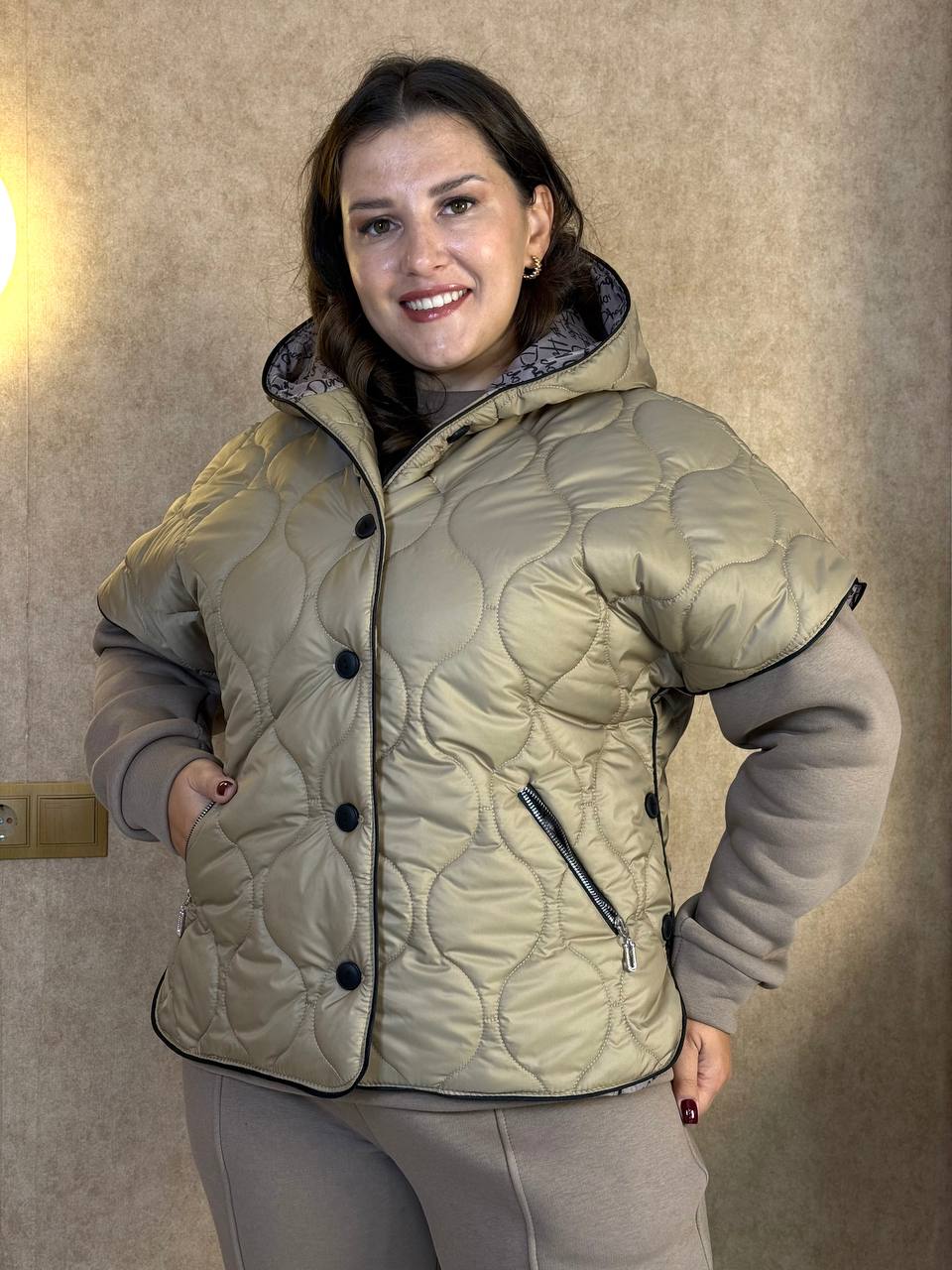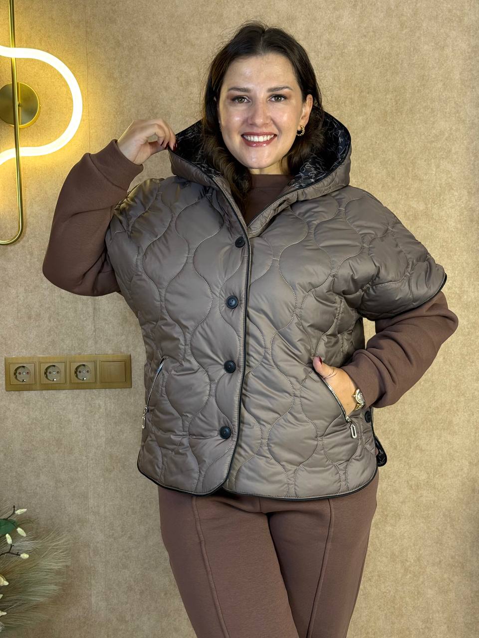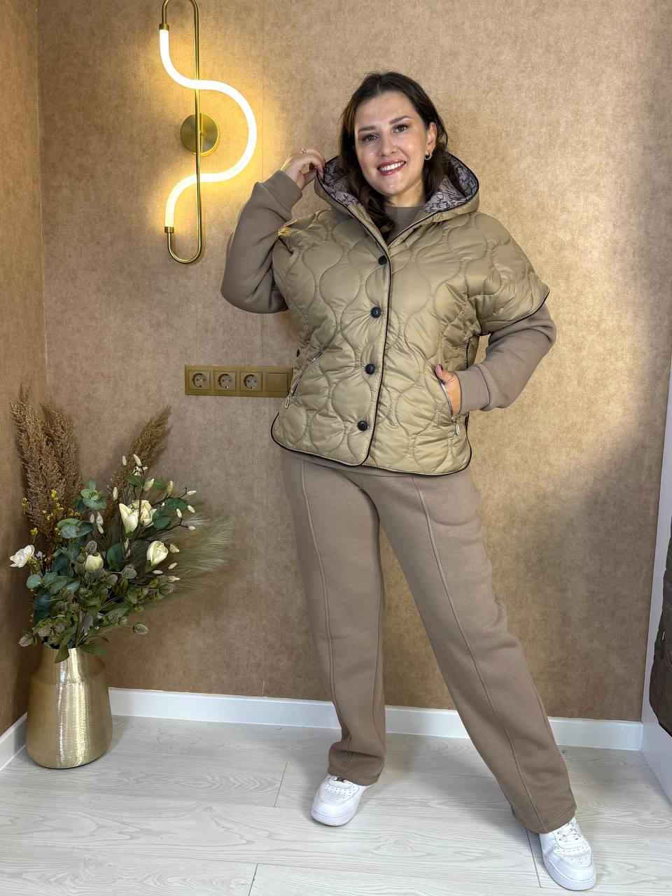 - Тканина: турецька тринітка Піньє, стьобана плащівка ( Синтепон щільність 150-ка), якісна підкладка ( щільність 190)