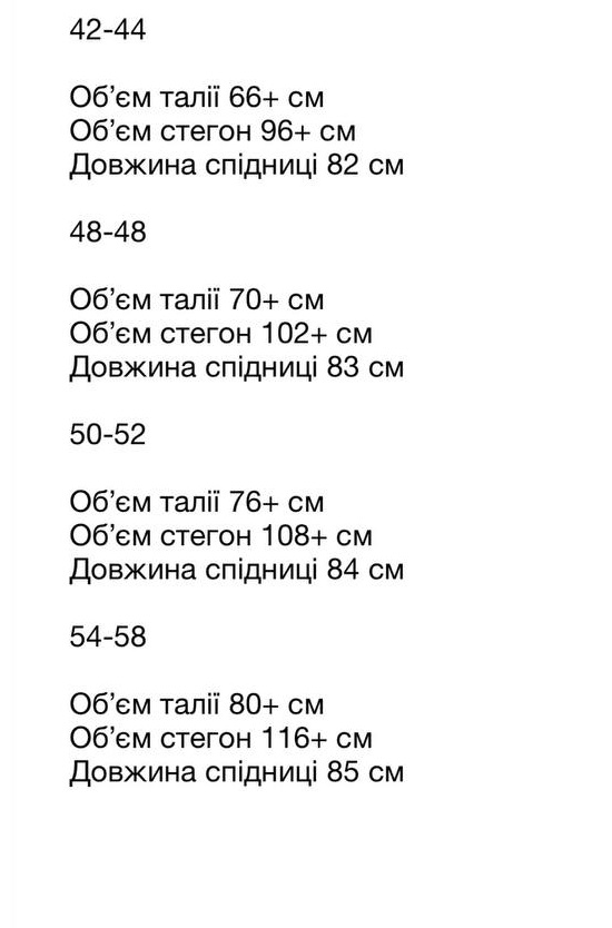 - Розміри: 42-44, 46-48, 50-52