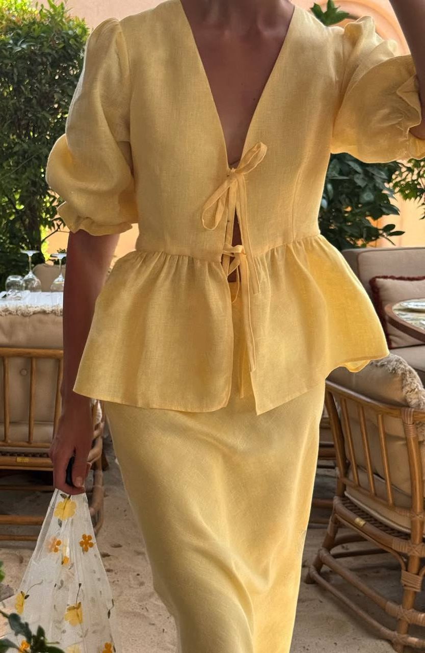 - Льняний костюм спідниця і сорочка