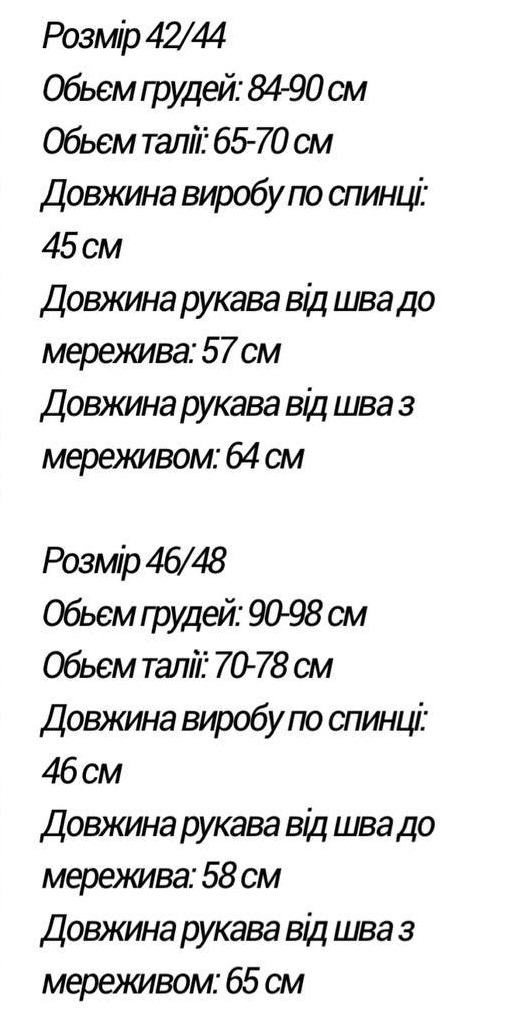 Таблиця розмірівРозмірна сітка для жіночого одягу
