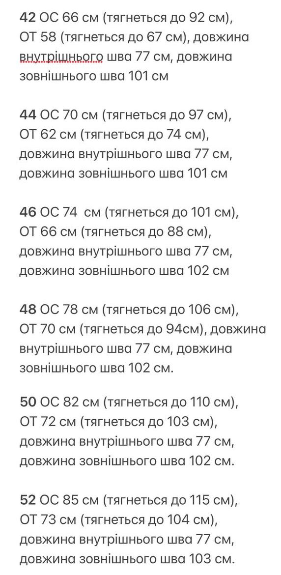 Таблиця розмірівРозмірна сітка для жіночого одягу