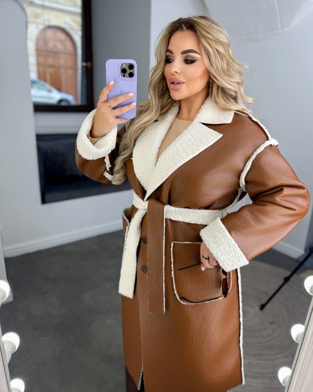 - Матеріал: якісна турецкая екошкіра з імітацією натуральної шкіри+ штучне хутро ягня