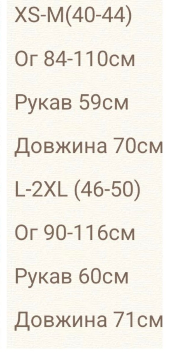 - Розміри: XS-M(40-44), L-2XL (46-50)