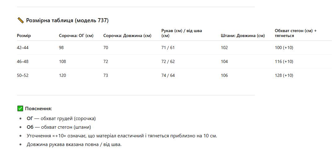 Таблиця розмірівРозмірна сітка для жіночого одягу