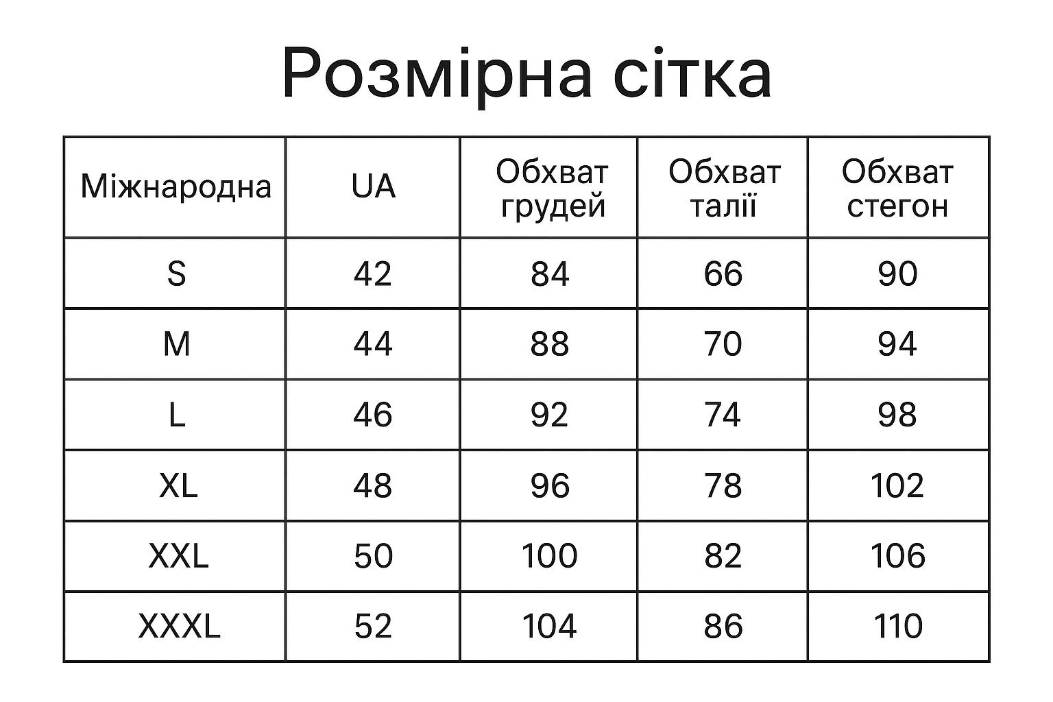 Таблиця розмірівРозмірна сітка для жіночого одягу