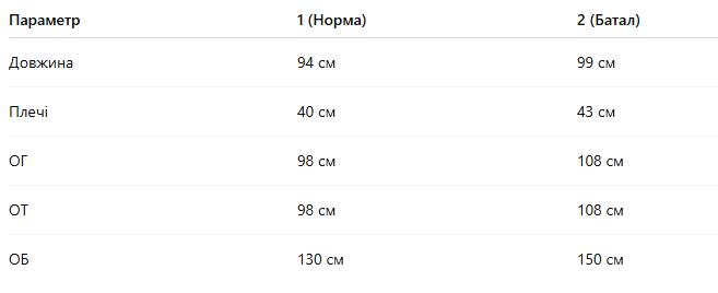 Таблиця розмірівРозмірна сітка для жіночого одягу