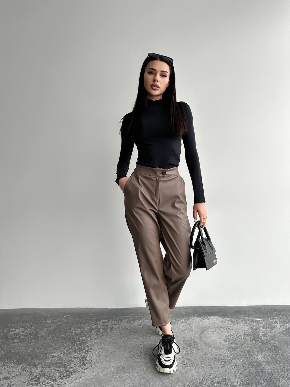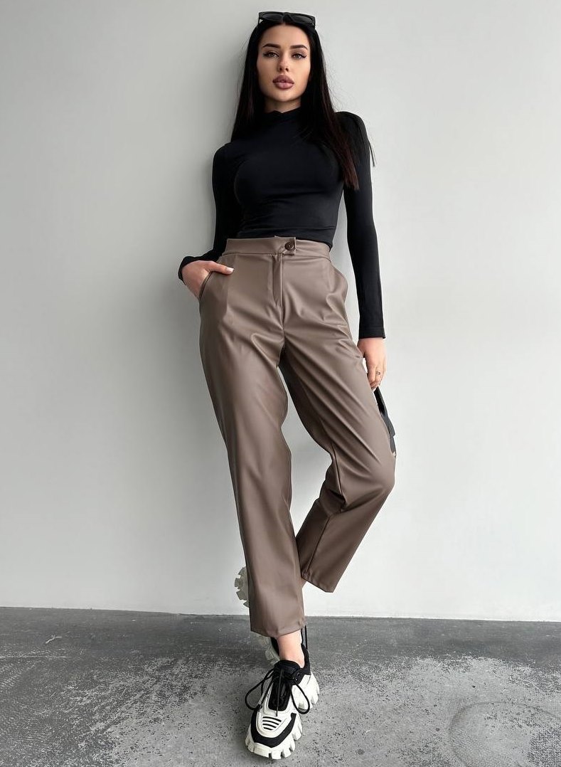 - Прямі штани на високій посадці