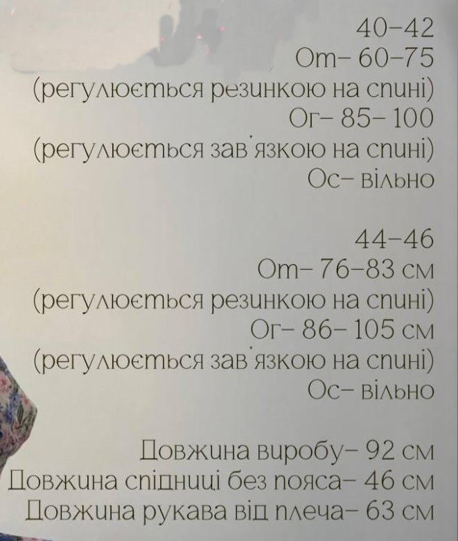 Таблиця розмірівРозмірна сітка для жіночого одягу