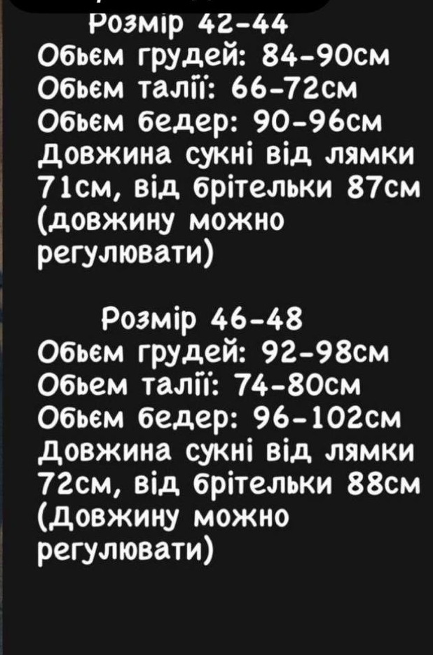 Таблиця розмірівРозмірна сітка для жіночого одягу