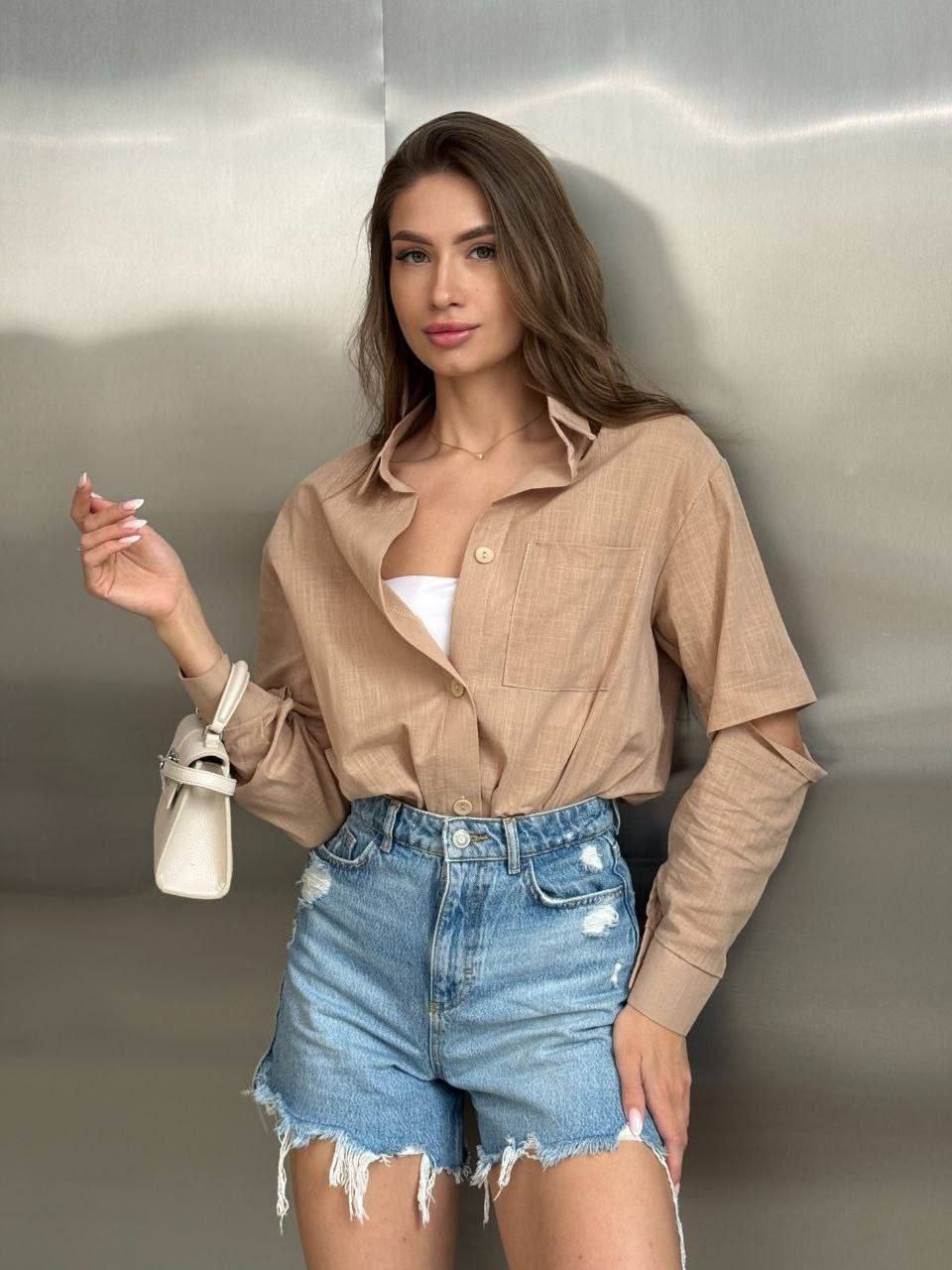 - Сорочка з розрізами на рукавах
