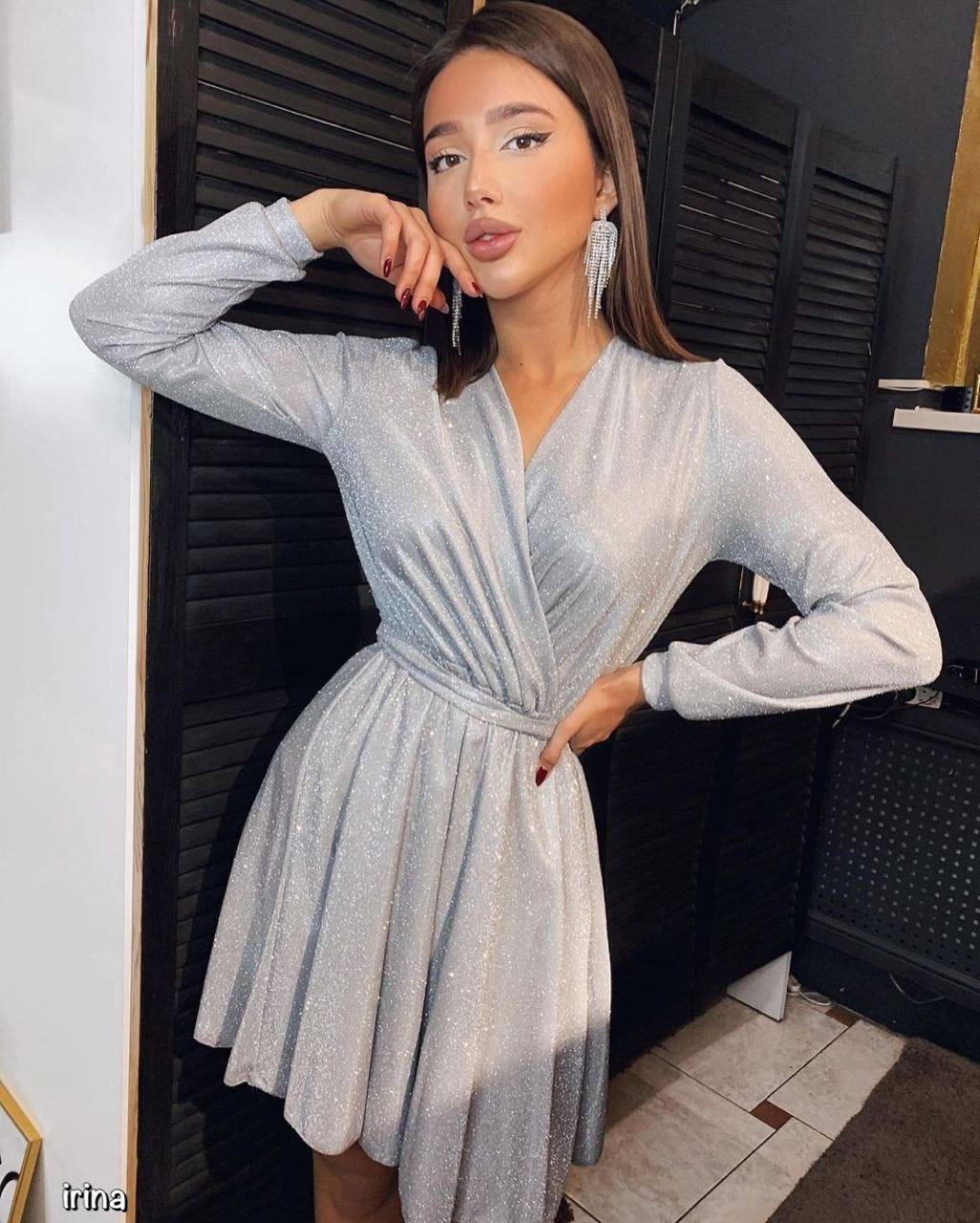 - Срібляста сукня