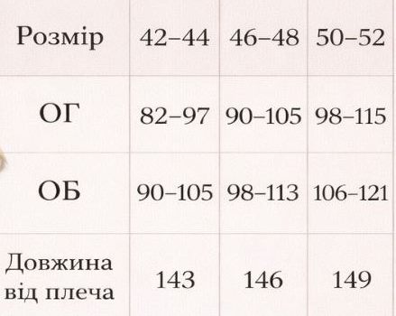 Таблиця розмірівРозмірна сітка для жіночого одягу