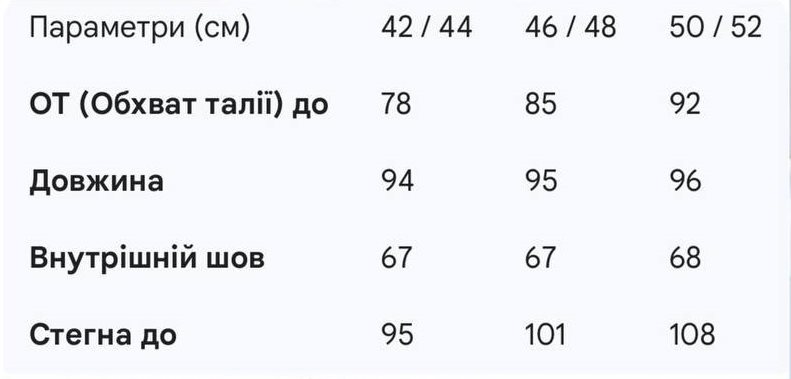 • Розміри: 42-44, 46-48, 50-52