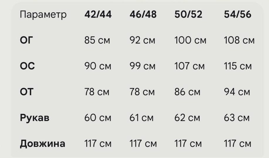 - Розміри: 42-44, 46-48, 50-52, 54-56