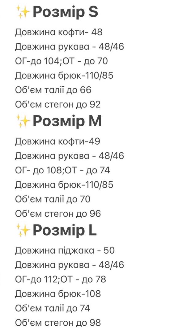 Таблиця розмірівРозмірна сітка для жіночого одягу
