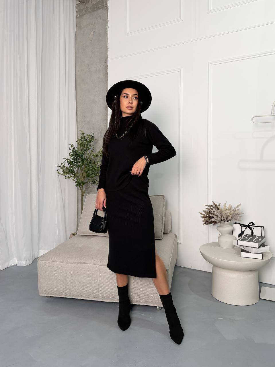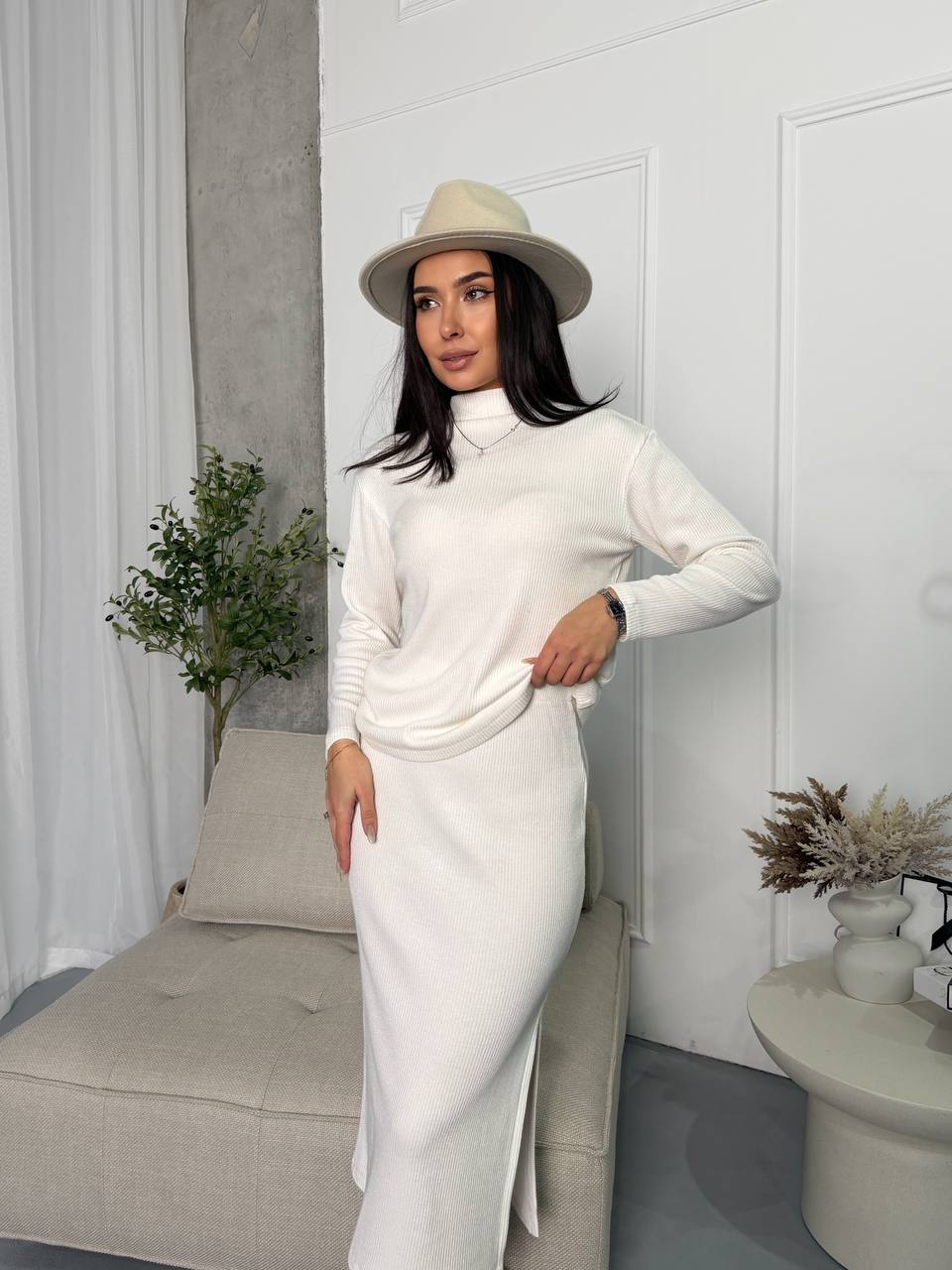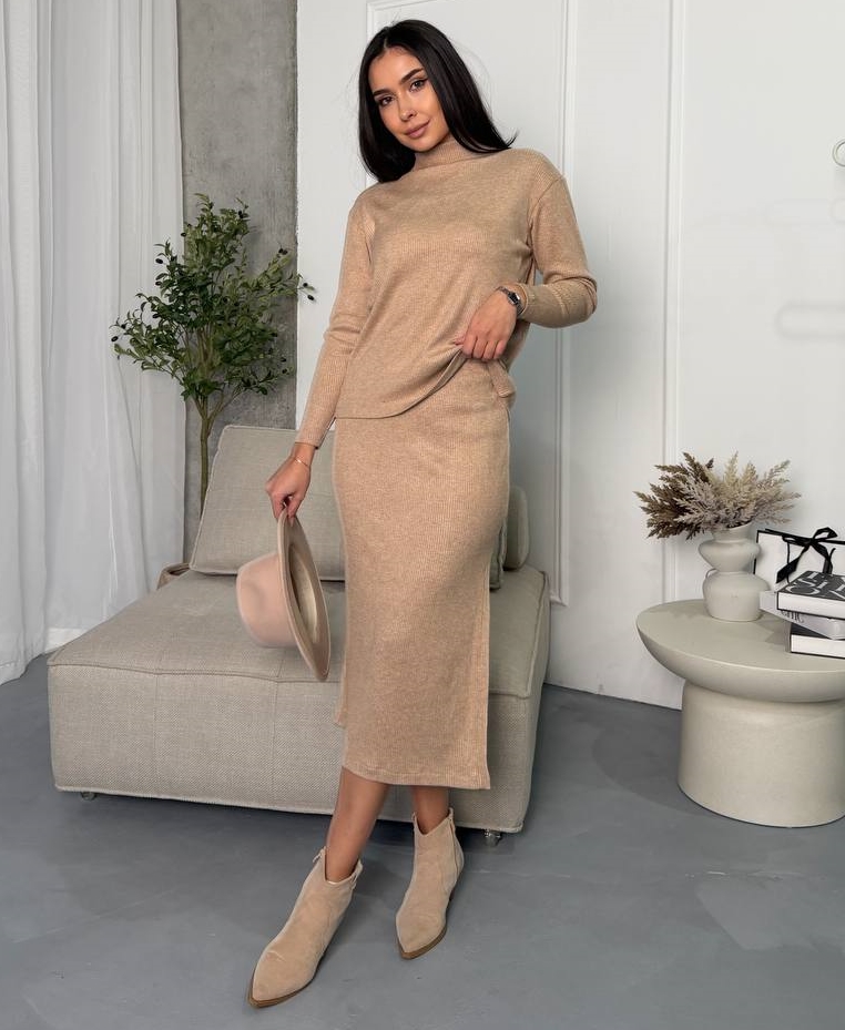 - Трикотажний костюм (кофта та спідниця)