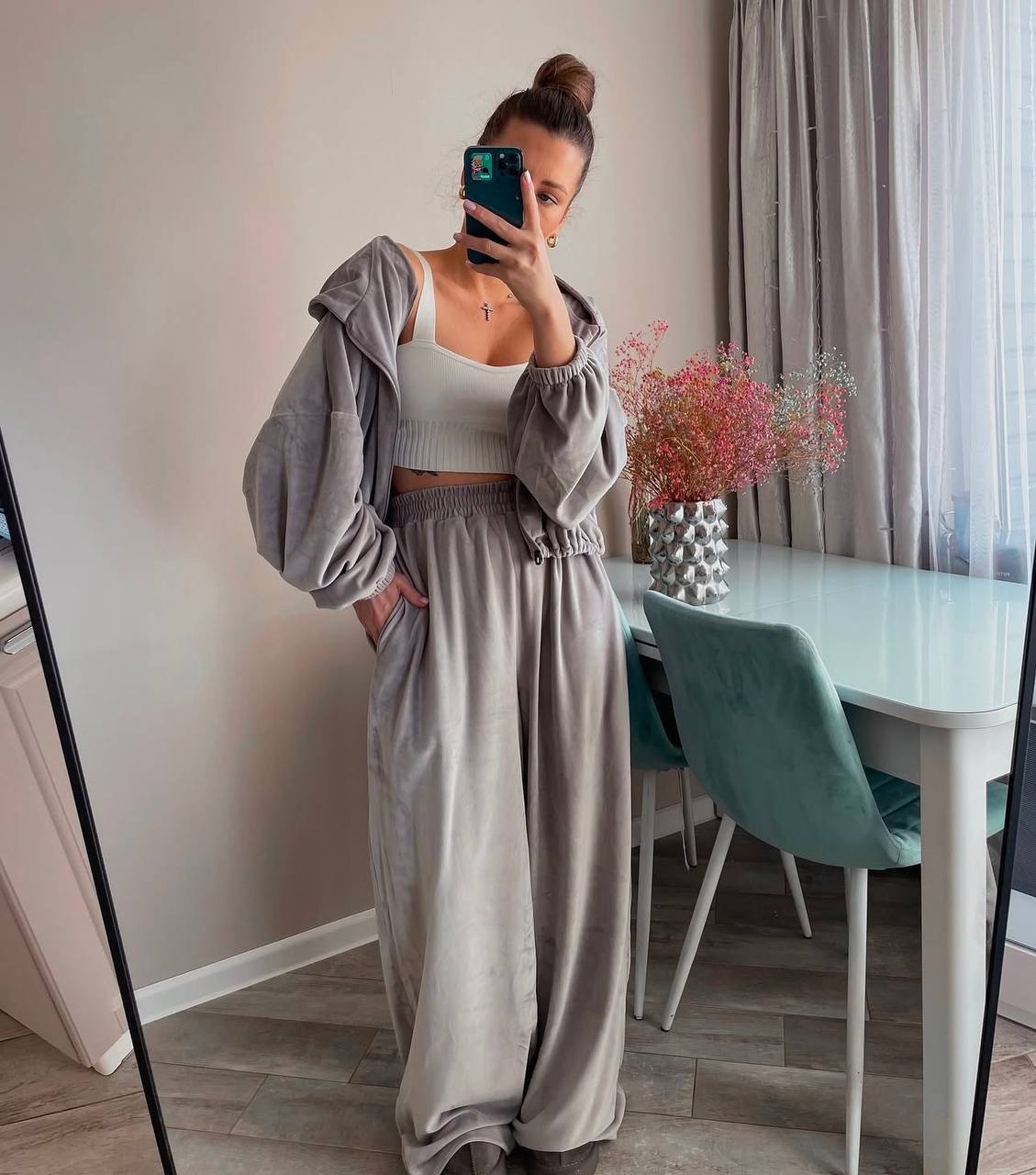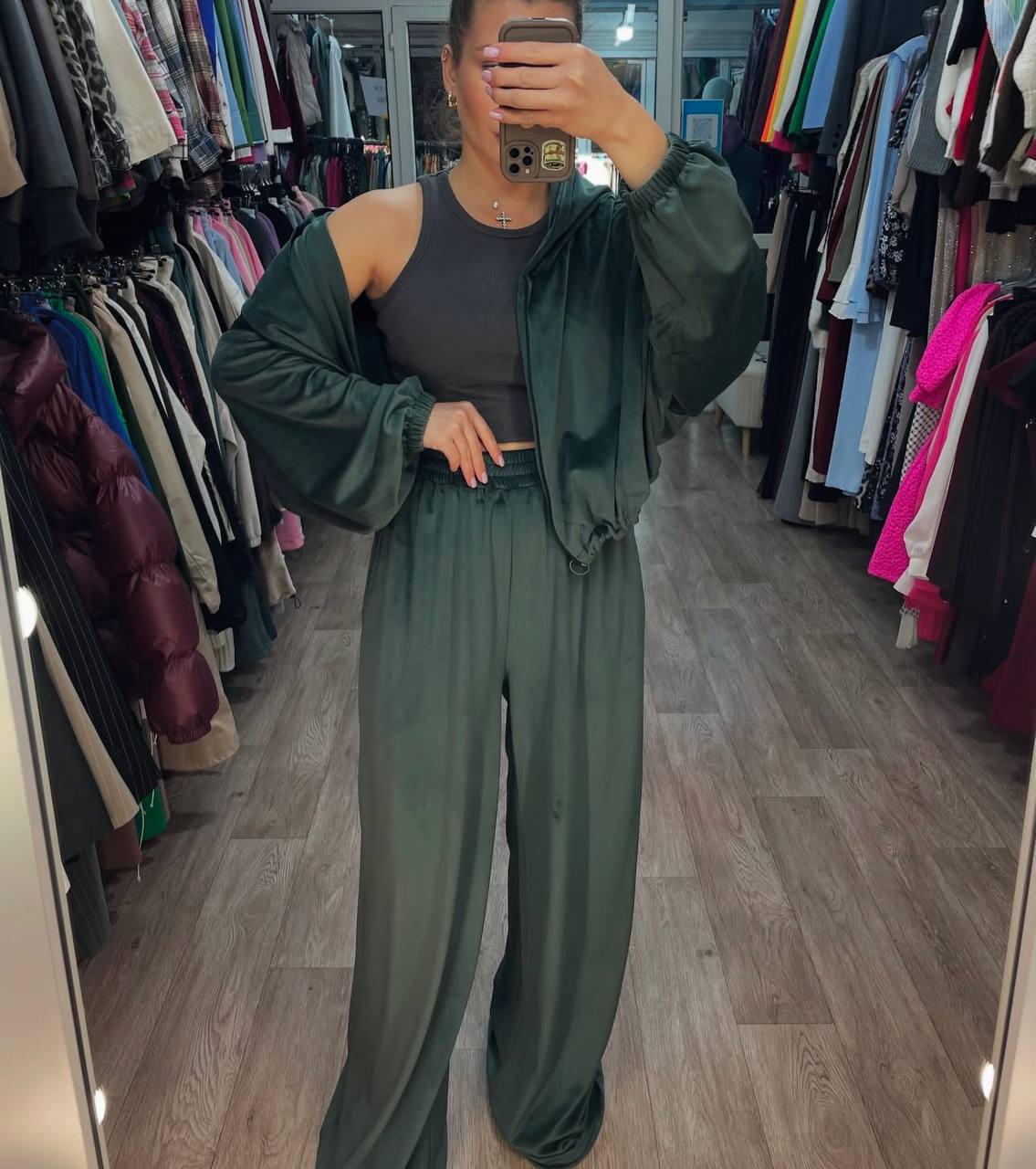 - Перший розмір ОГ до 105см, ОС до 102см, довжина кофти 62см, штанів 102 см
