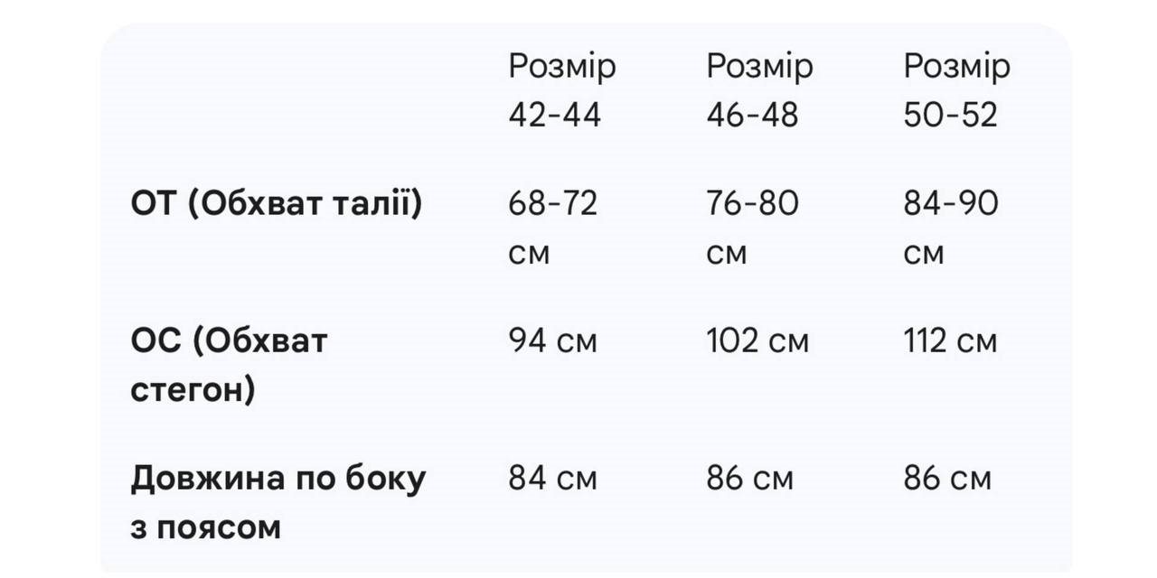 Таблиця розмірівРозмірна сітка для жіночого одягу