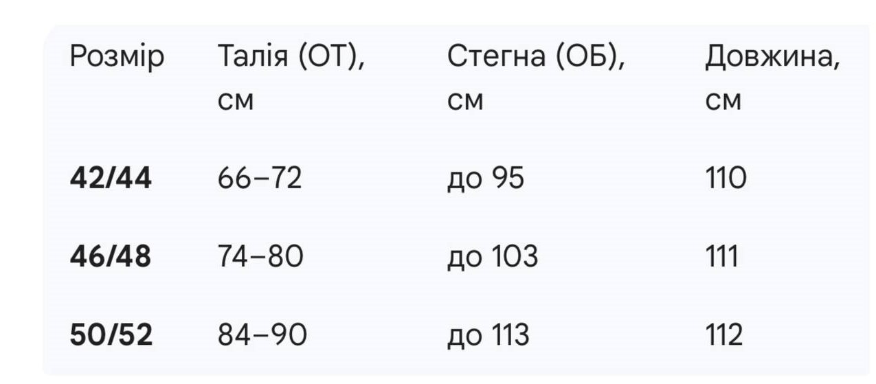 Таблиця розмірівРозмірна сітка для жіночого одягу