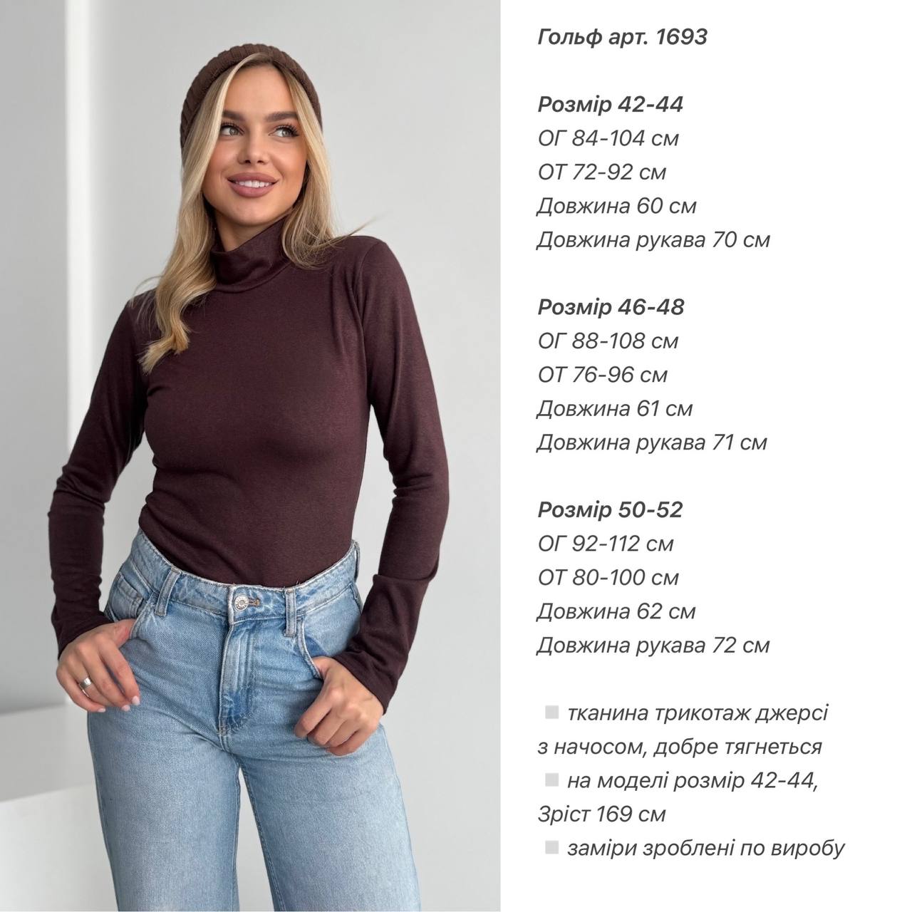 - Розміри: 42-44, 46-48, 50-52
