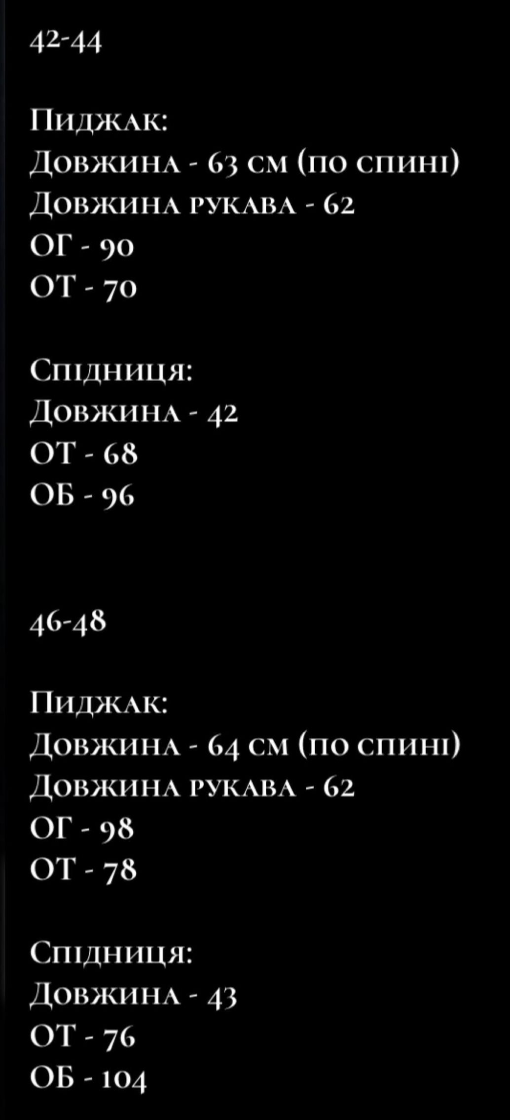 Таблиця розмірівРозмірна сітка для жіночого одягу