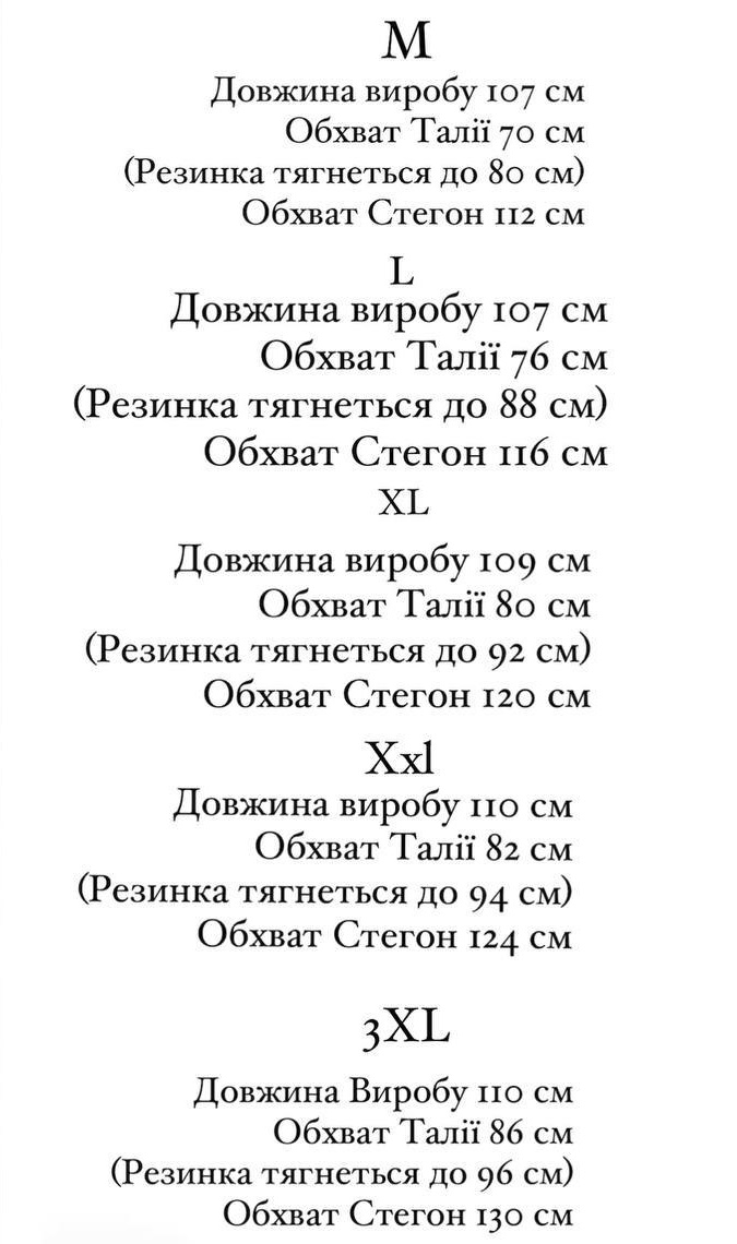 - Розміри: M, L, XL, XXL, 3XL