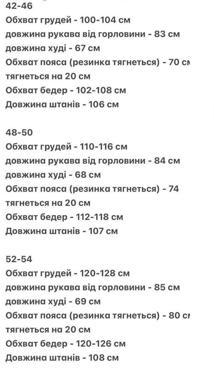 | розмір | 42 | 44 | 46 | 48 | 50 | 52 | 54 | 56 | 58 | 60 |