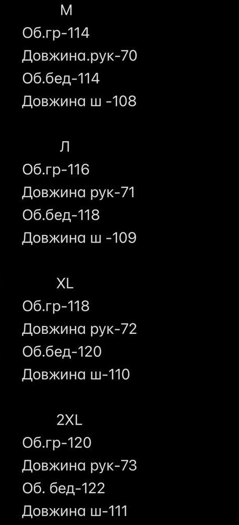 | розмір | 42 | 44 | 46 | 48 | 50 | 52 | 54 | 56 | 58 | 60 |