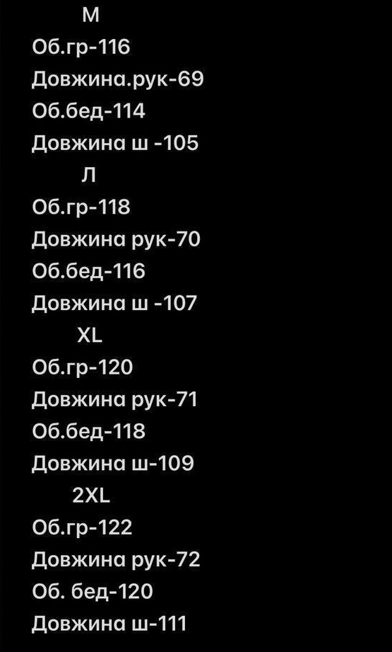 | розмір | 42 | 44 | 46 | 48 | 50 | 52 | 54 | 56 | 58 | 60 |